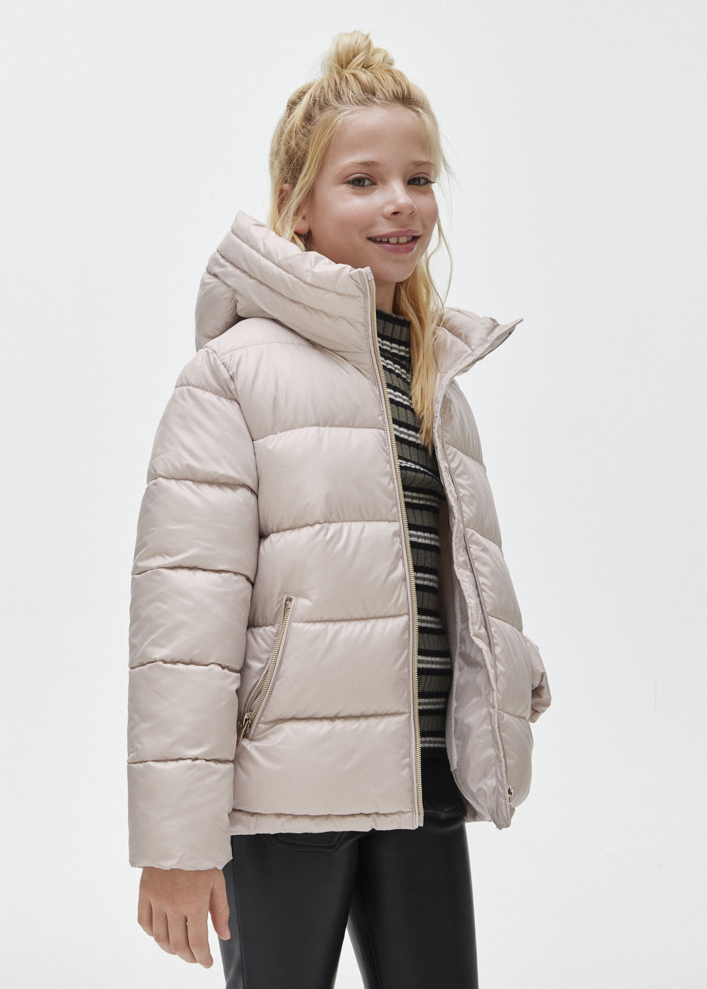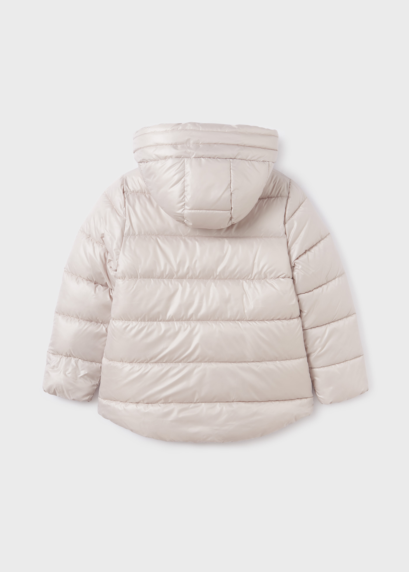 Giaccone manica lunga per ragazza con polsini elasticizzati. Girocollo. Chiusura centrale con cerniera. Tasche laterali.