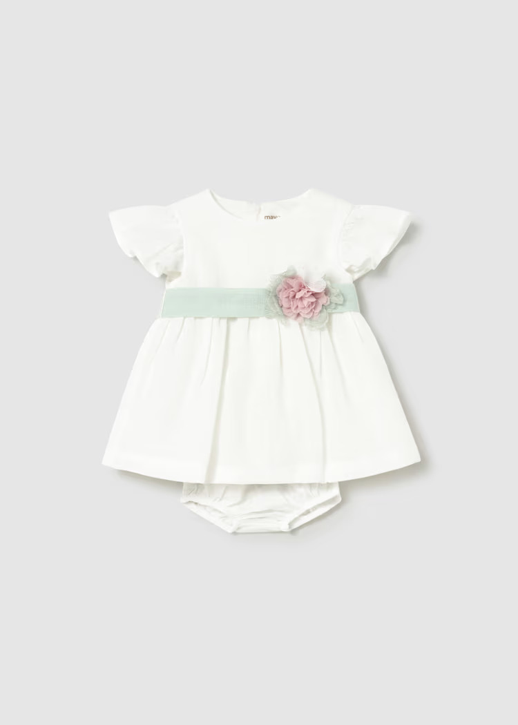 Vestito cerimonia neonata con fusciacca floreale e coulotte abbinata